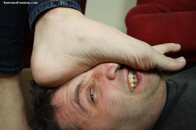 Dec 30 - Mistress Vintage enjoys rubbing her feet in her guy's face and making him lick them