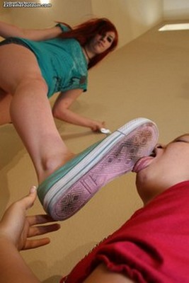 Nov 25 - Rochelle laughs as her foot slave worships her sneakers and feet