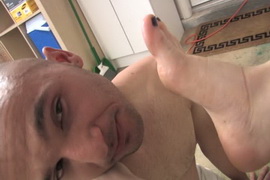 Jul 24 - Olivia has her slave laying in the garage, all positioned to worship her feet. She sits over him and tells him to take her shoes off using only his teeth. Unfortunately for him, he rips her stocking a little bit while removing the shoe, and this infuriates her. She shoves her whole foot into his mouth, down his throat, gagging him with it. She puts both of her big feet on his face and smothers him, not allowing him to breathe at all. She lets him breathe for one second every once in a while but then goes right back to smothering him, and his stomach is convulsing he is struggling so hard to breathe. She slaps him across the face and laughs sadistically at him, and threatens him with a huge stick.