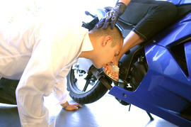Nov 8 - Mistress April is about to go for a ride on her bike and her slave worships her feet before she leaves