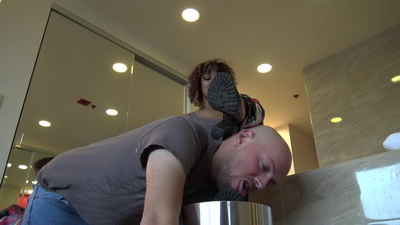 Jan 16 - Sexy blonde Mistress laughs as her slave licks her sneakers and dirty socks.